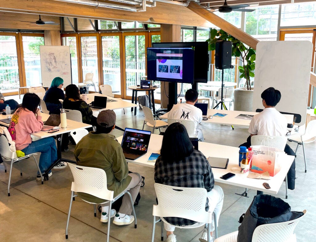 In the workshop, I remembered moments in my studio Augmenting Creativity where students were tasked with using AI tools: particularly in the silences. Working with AI — even when it is dynamic, interesting, generative, fruitful, fun — is a solitary endeavour. AI filmmaking, too, in a sense, is a stark contrast to the hectic, chaotic, challenging, but highly dynamic and collaborative nature of real-life production. This was a reminder, and a timely one, that in teaching AI (as with any technology or tool), we must remember three turns that students must make: turn to the tool, turn to each other, turn to the class. These turns — and the attendant reflection, synthesis, and translation required with each — is where the learning and the magic happens.